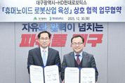 서울복지타임즈 이재연 기자 | 대구광역시는 12월 30일 오후 2시 30분, 산격청사 제1대회의실에서 국내 로봇 시장 점유율 1위 기업인 HD현대로보틱스와 ‘휴머노이드 로봇 산업 육성’을 위한 업무협약(MOU)을 체결했다. 이번 협약은 대구시와 HD현대로보틱스가 협력해 지역경제의 핵심 성장 동력으로 육성 중인 휴머노이드 로봇 산업의 저변을 확대하고, 관련 생태계를 조성하는 중요한 첫걸음이다. 특히 양 기관은 대구 로봇산업의 질적 도약을 위해 ‘로봇 국가첨단전략산업 특화단지’ 지정에 역량을 집중하고, 대구를 대한민국 로봇 산업의 전초기지로 구축한다는 구상이다. 또한, 대구시는 HD현대로보틱스 대구 본사 공장의 제조 혁신을 위한 ‘AI 팩토리 선도프로젝트’를 추진하고, 로봇 실증 인프라 확충을 위한 국비 예산 확보 등 정책적 지원을 강화할 방침이다. HD현대로보틱스는 글로벌 로봇 시장 수요 증가에 선제적으로 대응하기 위해 현재 연간 8,000대 수준인 생산 능력을 20,000대 규모로 2.5배 확대할 계획이다. 이를 위해 제조 공정에 AI 기술을 본격 도입하고, 자동화율을 기존 50%에서 80%까지 끌