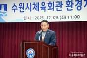 서울복지타임즈 이재연 기자 | 수원특례시의회는 9일, 수원시체육회관에서 열린 ‘수원시체육회관 리모델링 완료 보고회’에 참석했다. 이날 보고회에는 이재식 의장을 비롯해 오세철 예산결산특별위원장, 수원시체육회 관계자, 종목단체위원회 관계자가 참석한 가운데 리모델링 사업 경과보고, 감사패 전달, 현장 라운딩 등이 진행됐다. 이재식 의장은“이번 리모델링은 노후시설을 단순히 고치는 것이 아니라, 체육회가 보다 안정적인 환경에서 업무를 보고 시민들이 편리하게 운동할 수 있는 공간을 마련했다는 점에서 큰 의미가 있다”며“체육회관이‘시민 모두의 생활체육 플랫폼’으로 거듭나는 계기가 되길 기대한다”고 말했다. 이어“수원특례시의회도 생활체육 활성화를 위해 앞으로도 지속적인 관심과 지원을 이어가겠다”고 덧붙였다.