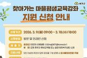 서울복지타임즈 이재연 기자 | 예천군은 3월 9일부터 3월 18일까지 2026년 ‘찾아가는 마을평생교육강좌’ 참여 희망자를 모집한다. ‘찾아가는 마을평생교육강좌’는 5명 이상의 군민이 학습모임을 구성해 희망 강좌를 신청하면, 예천군이 강사료를 지원해 마을과 생활권 가까이에서 평생학습을 받을 수 있도록 지원하는 사업이다. 특히 지난해 본 사업을 통해 군민들의 높은 관심과 적극적인 참여 속에 다양한 분야의 강좌가 운영되며 학습 접근성을 크게 높였고, 주민이 주도하는 학습 문화 확산과 마을 공동체 활성화에 기여하며 큰 호응을 얻었다. 이에 예천군은 군민들의 학습 수요 증가와 참여 열기를 반영해 올해는 지원 규모를 기존보다 확대해 운영할 계획이며, 선정된 학습모임에는 강좌당 최대 80만 원의 강사료를 지원한다. 신청을 희망하는 학습모임은 강사 섭외, 교육 일정 및 장소 등을 사전에 협의한 후 예천군청 홈페이지에 게시된 신청서를 작성해 이메일로 제출하거나 주소지 읍․면 행정복지센터를 통해 신청할 수 있다. 김학동 군수는 “찾아가는 마을평생교육강좌는 군민들께서 직접 배우고 싶은 내용을 스스로 기획