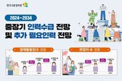 서울복지타임즈 이재연 기자 | 한국고용정보원(원장 이창수)은 '중장기 인력수급 전망'을 통해 향후 10년간 우리나라 노동시장의 인력공급(경제활동인구)과 인력수요(취업자)가 구조적으로 전환되는 양상을 전망하고, 향후 지속적인 성장을 위해 추가로 필요한 인력을 추계했다. 1.중장기 인력수급 전망(2024~2034) 주요 전망 결과를 보면, 15세 이상 인구 증가 폭은 과거에 비해 크게 둔화되고, 경제활동인구는 2030년부터는 본격적인 감소세로 전환될 것으로 나타났다. 저출생·고령화의 영향으로 생산가능인구(15~64세)는 지속적으로 감소하는 반면, 65세 이상 고령층 비중은 2034년 31.7%까지 확대되면서 노동 공급의 구조적 제약이 본격화될 전망이다. 이로 인해 15세 이상 전체 경제활동참가율은 전망 전기(‘24~’29년)에 감소 전환하는 반면, 고령층과 여성의 경제활동참가율은 점진적으로 상승할 것으로 예상되어, 노동시장 내 고령화 심화와 인력 구성의 질적 변화가 동시에 진행될 것으로 보인다. 2024년~2034년까지 취업자 수는 6.4만 명 증가하겠으며, 노동공급 제약의 영향으로 20