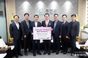 서울복지타임즈 이재연 기자 | 철원농협 최진열 조합장은 11월 6일 홍천군청을 방문해 지역 간 상생 발전을 기원하며 2년 연속으로 고향사랑기부금 400만 원을 홍천군에 기부했다. 이날 기부식에는 신영재 홍천군수를 비롯해 철원농협 최진열 조합장, 서홍천농협 권철중 조합장, 농협중앙회 황상돈 철원군지부장, 농협중앙회 김준태 홍천군지부장, 우광혁 철원농협 상임이사가 참석했다. 이번 기부는 고향사랑기부제 활성화를 위해 임직원들의 뜻을 모아 철원농협과 서홍천농협 간 교차 기부 방식으로 진행된 것으로, 지난 8월 서홍천농협이 철원군청에 기부한 데 이어 두 지역 간 상호 협력을 실천하는 계기가 되고 있다. 이러한 교차 기부는 고향사랑기부제의 안정적 정착에 기여할 뿐만 아니라, 지역 발전을 함께 응원하는 모범적인 상생 모델로 평가되고 있다. 신영재 홍천군수는 “지역은 다르지만 고향을 생각하는 마음은 같다.”라며 “철원농협 임직원분들의 따뜻한 기부에 깊이 감사드리며, 기부금은 홍천군 발전을 위해 소중히 사용하겠다.”라고 말했다. 한편, 고향사랑기부제는 지방자치단체에 기부하면 세액공제 혜택과 답례품을 받