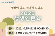 서울복지타임즈 이재연 기자 | 울산 중구에서 운영하는 울산종갓집도서관이 오는 10월 25일 오후 7시 울산종갓집도서관 1층 야외정원에서 지역 주민과 함께하는 2025년 생생인문학 행사를 개최한다. 2025년 생생인문학 행사는 ‘일상에 쉼표, 마음에 느낌표’라는 주제로, 기존의 명사 초청 특강 형식에서 벗어나 동화 구연과 클래식 공연을 결합한 특별한 문화 프로그램 형태로 진행된다. 이번 행사에서는 『완벽한 아이 팔아요』, 『마음여행』, 『파닥파닥 해바라기』, 『오늘상회』,『작은 빛 하나가』 등 따뜻한 울림을 담은 다양한 그림책이 소개된다. 이와 함께 영화 삽입곡으로 잘 알려진 'Moon river', 'A whole new world'와 프랑스 대중가요 'Je te veux' 등 그림책의 내용과 어울리는 아름다운 피아노·바이올린·첼로 연주가 풍성하게 펼쳐진다. 이번 행사에는 지역 주민 누구나 참여 가능하다. 참여를 희망하는 주민은 울산 중구 통합도서관 누리집을 통해 신청하면 된다. 울산종갓집도서관 관계자는 “이번 행사가 아이들에게는 꿈과 상상력을 키우고 어른들에게는 동심을 떠