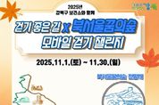 서울복지타임즈 이재연 기자 | 서울 강북구는 구민들의 일상 속 건강관리 실천을 독려하기 위해 11월 1일부터 30일까지 한 달간 ‘북서울꿈의숲 모바일 걷기 챌린지’를 운영한다. 이번 프로그램은 강북구민이면 누구나 참여할 수 있으며, 북서울꿈의숲 내 주요 산책 구간을 코스로 정해 운영된다. 코스는 서문 아트센터를 출발해 동문 방문자센터, 상상톡톡 미술관을 거쳐 다시 서문 아트센터로 되돌아오는 총 2km로, 약 40분 정도가 소요된다. 참여를 원하는 구민은 모바일 앱 ‘워크온’을 설치한 뒤, ‘강북구 걷기 좋은길 X 북서울꿈의숲 모바일 걷기 챌린지’ 참여하기 버튼을 누르면 된다. 스마트폰의 위치 정보 및 서비스와 데이터를 활성화한 상태로 코스를 완주하고, ‘응모하기’ 버튼을 눌러야 참여가 완료된다. 완주자 중 추첨을 통해 200명에게 모바일 서울사랑상품권(1만원)이 제공될 예정이다. 구는 지난해 세 차례, 올해 두 차례 걷기 챌린지를 운영하며 일상 속 걷기 문화 확산에 힘써왔다. 이번 챌린지 또한 주민들의 참여 기회를 확대하고, 건강에 대한 관심을 높이는 계기가 될 것으로 기대하고 있다. 이순희 강북구