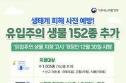 서울복지타임즈 이재연 기자 | 생태계 피해 사전 예방! 유입주의 생물 152종 추가 - '유입주의 생물 지정 고시' 개정안 12월 30일 시행 ■ 지정대상 - 1,005종 (152종 추가) · 신규 지정 종: 어류(5종), 곤충(47종), 식물(100종) ■ 신규로 지정된 152종 수입하려는 경우 - 사전 관할 유역(지방)환경청 승인 필요 ※ 불법 수입 시 2년 이하 징역 또는 2천만원 이하 벌금 부과 ■ 확인방법 - 기후에너지환경부 누리집 및 한국외래생물정보시스템(2026년 1월 공개) 생태계 보전을 위해 유입주의 생물 수입에 각별한 주의를 기울여 주세요!