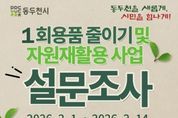 서울복지타임즈 이재연 기자 | 동두천시는 깨끗한 도시환경 조성을 위해 추진 중인 '1회용품 줄이기 및 자원 재활용 사업'의 기초자료로 활용하고자 시민 설문을 실시한다. 이번 설문은 동두천시민이면 누구나 참여할 수 있도록 개인정보 수집, 회원 등록, 로그인 등 별도 절차를 생략하고, 링크 또는 QR코드를 통해 바로 참여할 수 있게 구성했다. 참여 방법은 네이버 설문 링크 링크, 또는 QR코드를 이용하면 되며, 설문은 총 10개 문항으로 이뤄져 있다. 시 관계자는 “10대부터 어르신까지 다양한 시민의 의견을 폭넓게 듣기 위해 시 SNS와 관련 단체를 통해 설문 링크를 공유하고 있다”라며 “설문을 안내받은 시민들도 가족과 지인에게 공유해 참여를 독려해 달라”라고 밝혔다. 박형덕 동두천시장은 “이번 설문 참여와 함께 가정·직장·학교 등 일상에서 1회용품 사용을 줄이고 자원을 재활용하는 실천에 동참해 주시길 바란다”라며 “시는 설문 결과를 바탕으로 관련 사업을 적극 추진하겠다”라고 말했다.