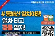 서울복지타임즈 이재연 기자 | 강원특별자치도와 강원관광재단은 오는 10월 2일부터 11월 16일까지‘KTX 동해선 철도여행 인증 이벤트’를 운영한다고 밝혔다. 추석 연휴와 가을철 성수기에 맞춰 동해선 철도여행 활성화를 위해 마련된 이번 이벤트는 강릉, 동해, 삼척, 부산 부전역 등 동해선 이용객을 대상으로 하며, 기차역과 열차 내 풍경 등의 사진과 동해선 열차 승차권·영수증을 인증하면 참여할 수 있다. 동해선 열차 이용객 누구나 전용 누리집(홈페이지)을 통해 이벤트 참여가 가능하며 추첨을 통해 백화점 상품권, 편의점 및 카페 모바일 상품권 등 다양한 경품이 제공된다. 최성현 강원관광재단 대표이사는 “이번 동해선 열차여행 인증 이벤트를 통해 동해선 철도여행의 매력을 확산시켜, 철도 정거장을 연계한 동해안권 관광을 더욱 활성화 시키겠다”고 말하며“다가오는 추석 명절, 동해선 철도를 이용하는 모든 분들의 여정이 더욱 편안하고 안전하시길 바란다”고 전했다. 자세한 이벤트 참여 방법은 동해선 철도여행 인증 이벤트 전용 누리집(홈페이지) 에서 확인할 수 있다. 한편, 올해 1월 개통한 동해선은 강