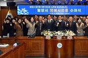 서울복지타임즈 이재연 기자 | 경남 밀양시는 15일 시청 소회의실에서 밀양시 발전에 기여한 전·현직 부시장 3명에게 명예시민증을 수여했다. 밀양시 명예시민증은 우방국가 또는 다른 지방자치단체의 주민으로서 밀양시정에 공로가 현저하거나 밀양시를 방문하는 귀빈에게 수여하는 증서로, 밀양시 부시장을 역임한 27대, 28대, 29대 부시장에게 수여됐다. 수여 대상자는 △27대 밀양시 부시장 김성규(현 경상남도 교육청년국장) △28대 밀양시 부시장 허동식(현 부산진해경제자유구역청 개발본부장) △29대 밀양시 부시장 곽근석(현 밀양시 부시장)이다. 수여 대상자들은 재임 기간 동안 시정의 주요 현안을 해결하며 밀양시의 다양한 정책을 이끌어 지역의 경제적, 사회적 발전에 기여해 왔다. 특히, 나노융합국가산업단지 조성 및 기업유치 기반 강화, 창녕~밀양 간 고속도로 개통, 김해~밀양 고속도로 건설 추진 등 지역경제 활력을 위한 기반 마련에 공통적으로 힘써왔다. 아울러 스마트 선도 농업을 통한 활기찬 밀양 조성, 머물고 싶고 다시 찾는 밀양을 만들기 위한 다양한 정책을 추진하며 품격 있는 문화·관광 도시