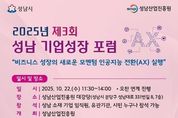 서울복지타임즈 이재연 기자 | 성남산업진흥원은 오는 10월 22일 11시 30분부터 ‘인공지능 전환 실행 전략’을 주제로 2025년 제3회 ‘성남기업성장포럼’을 개최한다. 이번 포럼은 성남시 중소기업의 성공적인 ‘인공지능 전환(AI Transformation)’을 실질적으로 지원하기 위해 마련됐다. ‘성남기업성장포럼’은 매회 성남시 중소기업이 직면한 경영환경 변화 이슈를 주제로 선정하여 개최되고 있다. 올해는 제1회 ‘기후테그 비즈니스 새로운 성공전략’, 제2회 ‘세계교질서 변화와 맞춤형 경영전략’ 등 두 차례 개최됐고, 14개 유관기관과 300여명의 기업인이 참여했다. 포럼 참가는 성남시 소재 기업인이면 누구나 가능하고, 성남산업진흥원 홈페이지를 통해 참가 신청을 할 수 있으며 행사 당일 현장 등록도 가능하다. 포럼에서는 한국산업기술진흥원 곽용원 첨단산업공급망단 단장이 정부의 ‘인공지능 전환’ 지원정책과 지원사업을 소개하고, 최재식 ㈜인이지 대표이사(카이스트 교수, 국가인공지능전략위원)가 ‘인공지능 전환’을 통한 비즈니스 혁신 사례와 구체적인 실행 전략을 제시할 예정이다. 본행사에 앞서 열리는 ‘