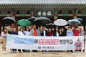서울복지타임즈 이재연 기자 | 여수세무서 청렴동아리 15명은 25일 오전 비가 내리는 가운데 진남관, 전라좌수영 동문터와 공사중인 동헌 등 전라좌수영성 주요 유적지를 답사하며 이순신의 청렴 리더십 현장체험학습 시간을 가졌다. 여수세무서 청렴리더십 현장학습 프로그램은 사단법인 여수여해재단과 공동으로 분기별로 여수시내 이충무공 유적지를 답사하며 이충무공의 청렴 리더십 강의와 함께 진행하고 있다. 이날 현장답사는 여수여해재단측에서 진남관 안내, 동문 및 전라좌수영 성터 답사에 이어 진남관유물전시관에서는 여수시 문화관광해설사로부터 진남관의 건축물이 지닌 역사에 대해서 상세한 안내를 받았다. 또한 여수세무서 청렴동아리 회원들은 진남관 입구에서 ‘공정하게’, ‘합리적으로’ 등의 구호가 적힌 손팻말을 들고 청렴하고 합리적이 세무행정 실천 캠페인도 펼쳤다. 전반기에는 통제이공대첩비와 충민사 답사를 마쳤으며, 하반기에는 이날 진남관 일대 답사에 이어 11월에 충무공 어머니 사셨던 곳과 선소 등 답사가 이어진다. 여수세무서 김훈 서장은 “세무 공직자로서 이순신 유적지를 답사하는 것은 이순신의 청렴 정신을