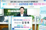 서울복지타임즈 이재연 기자 | 김영록 전라남도지사는 26일 APEC 정상회의 성공적 개최를 기원하고 영호남 상생협력을 위해 ‘APEC 성공 기원 특별예금’ 가입 릴레이 캠페인에 참여했다. 이번 특별예금은 APEC 정상회의 성공을 응원하는 전 국민 참여형 금융상품으로, 가입 기간은 1년이다. 1인당 100만 원 이상 3천만 원 이내에서 가입할 수 있다. 김영록 지사는 이날 NH농협은행 전남도청지점을 방문해 예금에 가입하고, “APEC 정상회의의 성공적 개최를 진심으로 응원한다”며 “앞으로도 다양한 분야에서 영호남 상생협력을 적극 추진하겠다”고 말했다. 김영록 지사의 예금 가입은 개최지인 경상북도를 제외한 전국 광역지자체장 최초로, 타 지자체장들의 가입 릴레이 참여 분위기를 조성하는 데 기여할 것으로 기대된다.