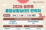 서울복지타임즈 이재연 기자 | 제주특별자치도는 13일 진명기 행정부지사 주재로 ‘2026년 설연휴 종합대책 보고회’를 열고 ‘민생에 온기를, 안전에 안심을 더하는 설명절’을 주제로 분야별 세부 추진계획을 점검했다. 이날 보고회에는 정무부지사를 비롯해 안전건강실장, 특별자치행정국장, 행정시 부시장 등 상황반별 실국단장 20여 명을 포함한 130여명의 간부공무원이 참석했다. 제주도는 14일부터 18일까지 특별자치행정국장을 총괄로, 총 7개반 1,491명을 투입해 종합상황실을 운영한다. 도 7개반 366명, 제주시 7개반 625명, 서귀포시 9개반 500명이 참여하며, 하루 평균 298명이 현장에서 비상근무를 선다. 제주 120 만덕콜센터와 당직 근무자가 도민과 관광객 불편신고를 접수한다. 지난 10일 수립해 추진 중인 설연휴 종합대책은 ▲민생경제 안정 ▲도민안전 확보 ▲교통․관광 편의 ▲도민불편 해소 ▲나눔실천 등 5개 분야로 구성됐다. 물가안정 및 소비촉진을 위해 탐나는전 적립률 상향과 전통시장 온누리상품권 환급행사 등 소비지원 대책을 추진한다. 탐나는전 적립률을 2월 한 달간 20%로