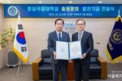 서울복지타임즈 이재연 기자 | 경상국립대학교 총동문회와 재경총동문회는 10월 28일 모교에 발전기금 1000만 원을 기부했다. 이날 기부한 발전기금은 총동문회에서 500만 원, 재경총동문회에서 500만 원을 출연한 것이다. 경상국립대학교 국제처는 이날 오후 2시 가좌캠퍼스 대학본부 3층 접견실에서 발전기금 전달식을 개최했다. 행사에는 권진회 총장, 오재신 국제처장, 황정숙 국제협력과장과 총동문회 회장, 정대인 사무총장, 박시진 사무차장, 정종헌 홍보국장, 강영추 기획처장 등 10여 명이 참석했다. 이로써 경상국립대학교 총동문회는 그동안 모교 발전기금 7000만 원을 기부했고, 재경총동문회는 1460만 원을 기부했다. 이번 발전기금은 총동문회와 재경총동문회가 뜻을 모아 대학과 학생들을 위해 의미 있는 후원을 실천하자는 데 공감하면서 이루어진 귀한 후원금이다. 총동문회는 “이번 기부가 선후배 간의 유대감을 강화하고, 모교 발전에 보탬이 되는 계기가 되기를 바란다.”리고 전했다. 총동문회장은 “경상국립대학교의 발전은 곧 동문 모두의 자부심”이라며 “이번 기부가 대학 발전의 밑거름이 되고, 후배들에게 용기