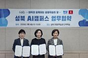 서울복지타임즈 이재연 기자 | 서울 성북구가 관내 우수 대학과 협력해 구민을 위한 미래형 교육 거점인 ‘성북 AI 캠퍼스’ 조성에 본격 착수했다. 성북구는 3월 4일 오전 10시 성북구 평생학습관에서 한성대학교, 고려대학교와 함께 ‘성북 AI 캠퍼스 조성을 위한 업무협약(MOU)’을 체결했다고 밝혔다. 이날 협약식에는 성북구 복지교육국장 곽정숙을 비롯해 한성대학교 서울RISE사업단 단장 장명희, 고려대학교 인문사회디지털융합인재양성사업단 부단장 정유진 등 관계자들이 참석해 지역 기반 디지털 교육 협력 방안을 논의했다. 이번 협약을 통해 성북구와 두 대학은 AI 시대에 대응해 구민의 디지털 정보 격차 해소와 미래형 융합 인재 양성을 목표로 협력 체계를 구축하기로 했다. 협약에 따라 고려대학교 인문사회디지털융합인재양성사업단의 교육 인프라와 한성대학교 서울 RISE 사업단의 지역 연계 역량을 활용해 구민 눈높이에 맞춘 AI·디지털 평생교육 프로그램을 공동으로 기획·운영할 예정이다. 성북구는 협약 체결 이후 실무 협의를 거쳐 올해 상반기부터 평생학습관을 중심으로 AI 기본 과정과 AI 기반 다양