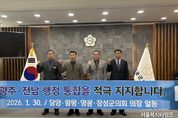 서울복지타임즈 이재연 기자 | 담양군의회가 인구 소멸 위기 극복과 지역 경쟁력 강화를 위해 인근 의회와 손을 맞잡고 광주-전남 행정통합 추진에 힘을 보탰다. 담양·함평·영광·장성군 의장단은 ‘광주-전남 행정통합 염원 공동 퍼포먼스’를 펼치며, 행정구역의 경계를 넘어선 초광역 협력 체계 구축에 대한 강력한 의지를 표명했다. 이번 퍼포먼스는 단순한 선언을 넘어, 광주와 전남이 하나의 생활권이자 경제권으로 재편되어야만 수도권 집중화에 대응하고 자생적인 발전 동력을 얻을 수 있다는 절박한 공감대 속에서 마련됐다. 참석한 의장단은 성명을 통해 “행정통합은 지역의 미래 경쟁력 확보와 균형발전을 위해 더 이상 미룰 수 없는 시대적 소명”이라며, “지금이야말로 광주와 전남의 백년대계를 결정할 골든타임”이라고 강조했다. 특히 장명영 의장은 “담양은 광주와 인접한 지리적 이점과 생태문화 자원을 동시에 갖춘 지역으로, 행정통합 시 시너지 효과가 가장 클 것으로 기대되는 곳”이라며, “통합 과정에서 군민의 목소리가 소외되지 않고 실질적인 복지 증진과 지역 발전으로 이어질 수 있도록 정책적 역할을 다하겠다”고 말했다. &
