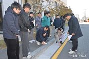 서울복지타임즈 이재연 기자 | 울산 남구가 28일 도로관리 담당 직원들을 대상으로 현장 중심의 도로관리 분야 교육을 진행하며 도로 시설물 정비 품질 향상에 나섰다. 이날 교육은 문수로435번길과 두왕로154번길 일원에서 실제 시행된 공사 사례를 바탕으로 원형수로관 설치, 노후 측구 정비, 도로 재포장 품질관리, 도로침하 예방 등 실무에서 가장 많이 발생하는 문제 해결 중심으로 구성됐다. 교육에서는 먼저 문수로435번길 노후측구 정비 과정(L=388m)을 소개하며 원형수로관 설치 시 지하시설물 이설 필요성과 굴착폭 확대, 버림콘크리트 타설 기준, 수로·맨홀 단차 조정 중요성 등을 강조했다. 특히 원형수로관의 우수한 내구성, 균일한 품질 확보, 유수 흐름 개선, 도로 미관 향상, 유지관리 용이성 등 현장 적용성을 설명하며 실제 시공 시 고려해야 할 기술 요소들을 함께 짚었다. 이어 도로포장 시 흔히 발생하는 침하 문제와 그 원인을 집중분석 했다. 하부 지반 공동 발생, 지하수 변동, 다짐 불량 등 주요 원인을 설명하고, 아스콘 포설 온도(120℃ 이상 유지), 절삭·다짐 공정 기준, 맨홀