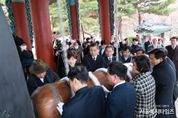 서울복지타임즈 이재연 기자 | 김진열 군위군수는 지난 1일 신암선열공원 참배를 시작으로 제107주년 3․1절 기념식에 참석한 뒤, 국채보상운동기념공원에서 열린 달구벌 대종 타종식에 대구시 구군 대표로 타종에 참여했다. 이번 달구벌대종 타종식은 3.1절을 기념하여 광복회 대구광역시지부 주관으로 개최됐으며, 시장 권한대행, 시의회 의장, 교육감, 군수·구청장, 보훈단체장, 광복회원 등 여러 인사가 참석한 가운데 타종과 만세삼창으로 뜻깊은 시간을 가졌다. 김진열 군위군수는 타종식 이후 "오늘 타종을 통해 3.1 운동의 숭고한 정신과 선열들의 희생을 되새기는 뜻깊은 시간이었다.”며“1919년 우리 선조들의 헌신과 희생으로 이어진 3.1. 운동 정신은 오늘날까지 우리 사회에 소중한 가치로 전해지고 있다.”고 말했다. 이어 "군위군민으로서 자긍심을 가슴에 새기며, 군민 한 분 한 분의 염원과 소망을 담은 타종이 널리 울려 퍼져나가기를 바란다.”며 “앞으로도 서로를 응원하고 화합하는 공동체 안에서 군민 모두의 건강과 평안이 이어지기를 기원한다.”고 덧붙였다.